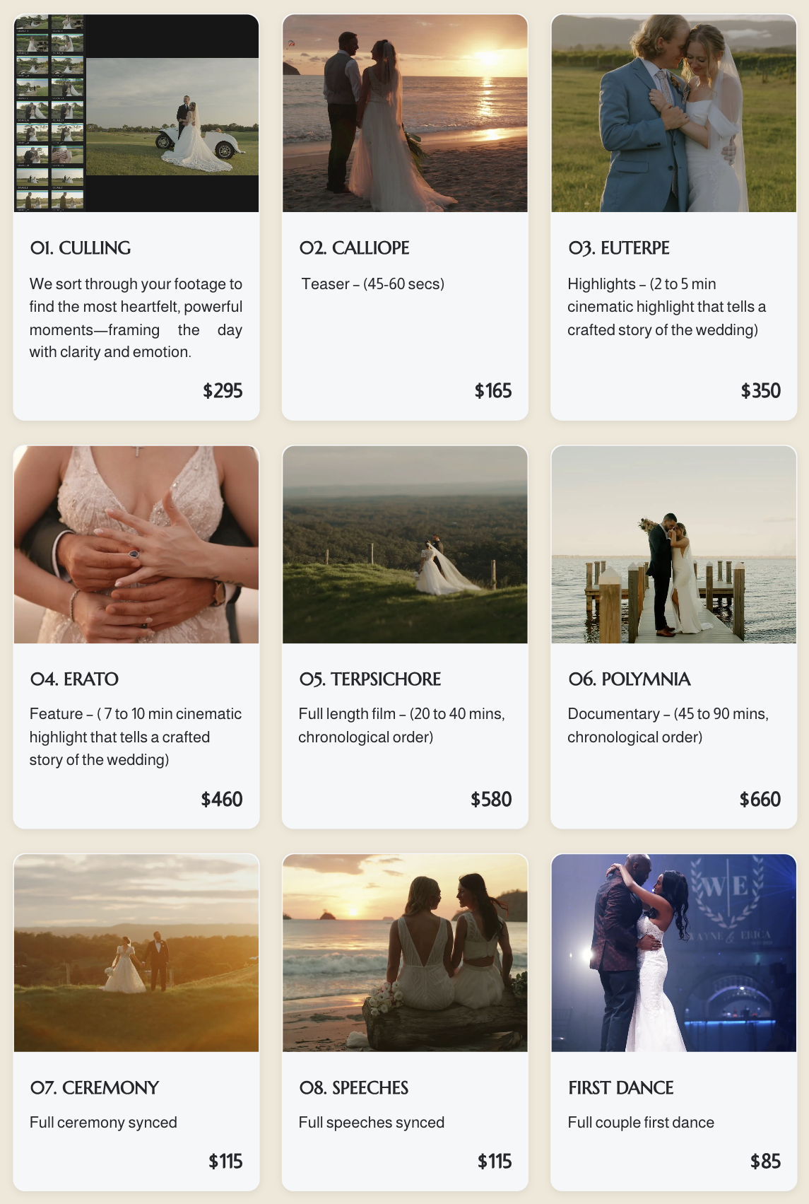 (NOTE: If your project is filmed using one or two cameras max, you will receive a $50.oo discount on the highlights you choose)